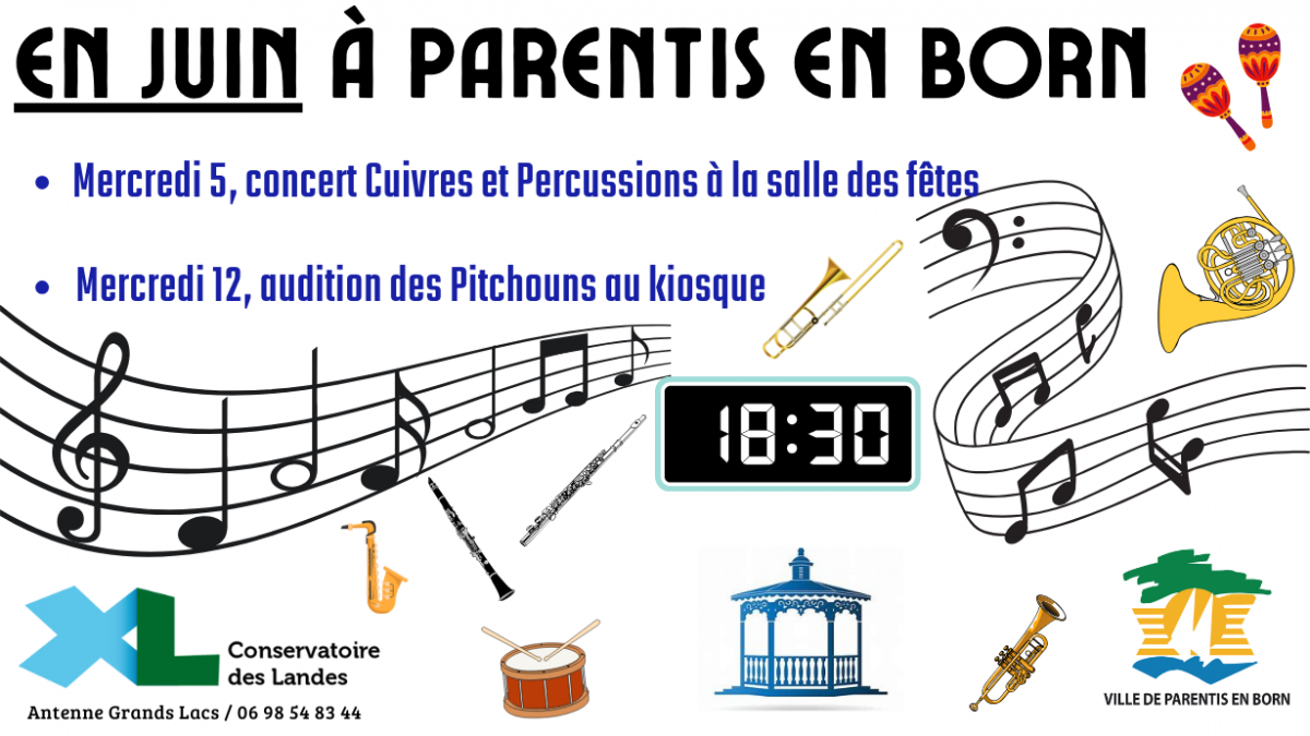 > Mercredi 5 Juin, concert des Cuivres et Percussions à la salle des fêtes