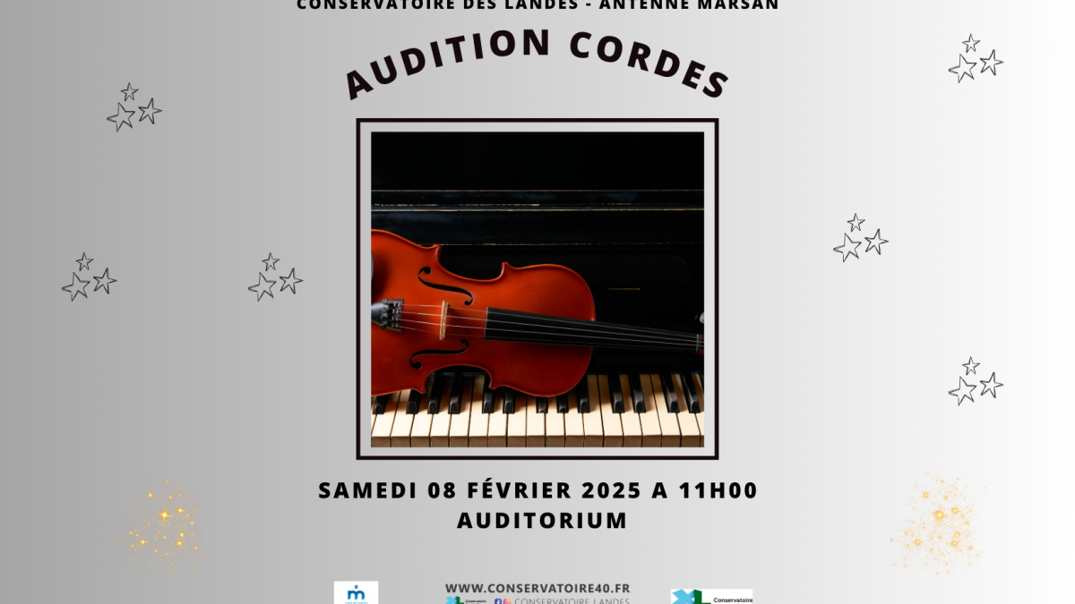 [ANTENNE MARSAN] AUDITION CORDES [ANTENNE MARSAN] AUDITION CORDES Publié le 27 novembre 2024 / Dernière modification le 20 décembre 2024 [ANTENNE MARSAN] AUDITION CORDES Publié le 27/11/2024 - Dernière modification le 20/12/2024 Nos élèves sont heureux de vous présenter leur travail. Venez partager ce moment avec eux!