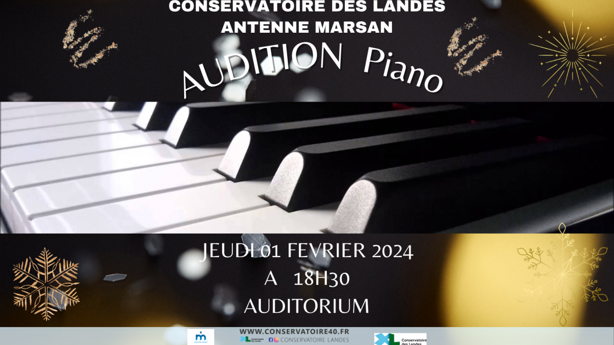 [ANTENNE MARSAN] Audition Piano [ANTENNE MARSAN] Audition Piano Publié le 12 janvier 2024 / Dernière modification le 30 janvier 2024 [ANTENNE MARSAN] Audition Piano Publié le 12/01/2024 - Dernière modification le 30/01/2024 Parce que les auditions sont importantes dans l'apprentissage de la musique. Venez écouter nos élèves de Mont de Marsan.