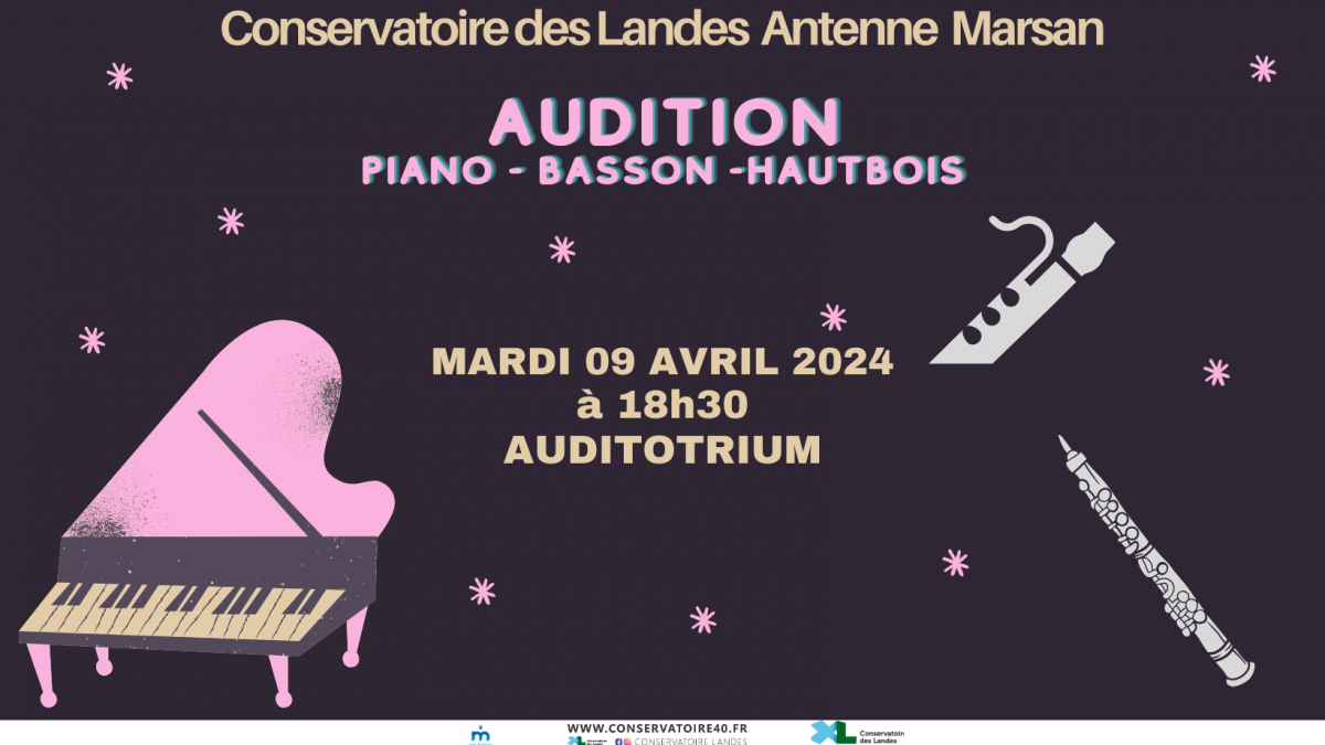 [ANTENNE MARSAN] Audition Piano - Basson - Hautbois [ANTENNE MARSAN] Audition Piano - Basson - Hautbois Publié le 06 mars 2024 / Dernière modification le 06 mars 2024 [ANTENNE MARSAN] Audition Piano - Basson - Hautbois Publié le 06/03/2024 - Dernière modification le 06/03/2024 Parce que les auditions sont importantes dans l'apprentissage de la musique. Venez écouter nos élèves de Mont de Marsan.