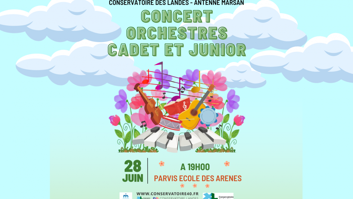 [ANTENNE MARSAN] Concert Orchestres Cadet et Junior [ANTENNE MARSAN] Concert Orchestres Cadet et Junior Publié le 09 avril 2024 / Dernière modification le 09 avril 2024 [ANTENNE MARSAN] Concert Orchestres Cadet et Junior Publié le 09/04/2024 - Dernière modification le 09/04/2024 Vous voulez passer un moment agréable... Venez écouter nos élèves des Orchestres Cadet et Junior