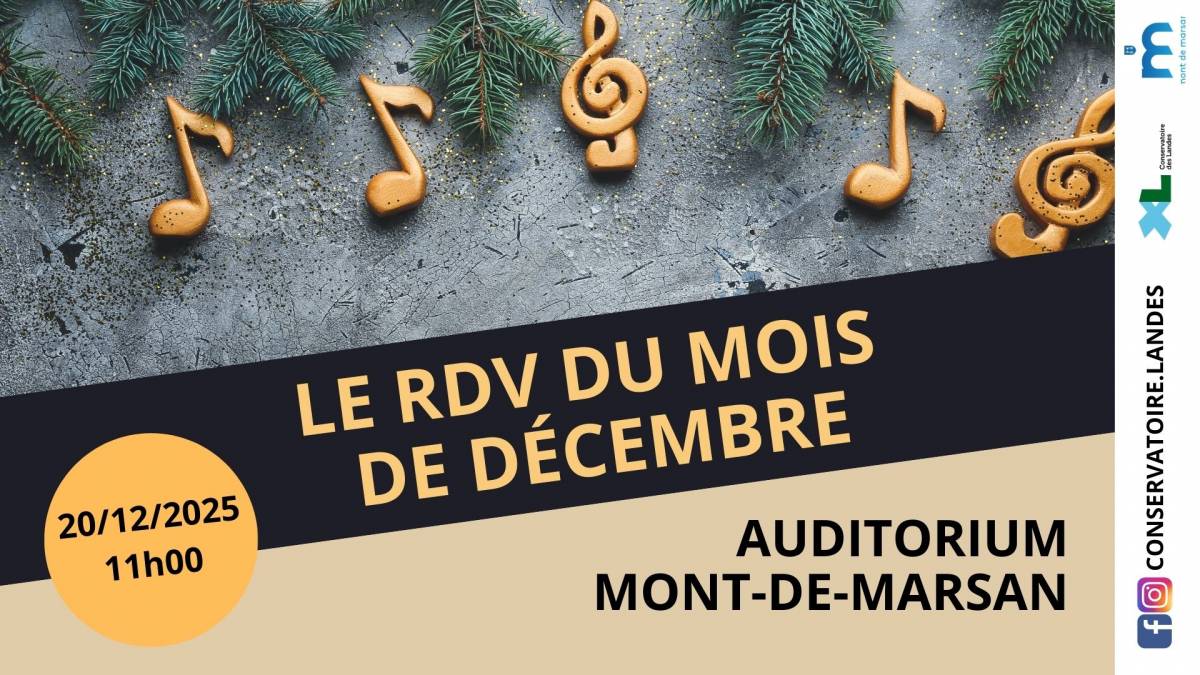 [ANTENNE MARSAN] LE RENDEZ-VOUS DU MOIS DE DECEMBRE [ANTENNE MARSAN] LE RENDEZ-VOUS DU MOIS DE DECEMBRE Publié le 13 novembre 2025 / Dernière modification le 13 novembre 2025 [ANTENNE MARSAN] LE RENDEZ-VOUS DU MOIS DE DECEMBRE Publié le 13/11/2025 - Dernière modification le 13/11/2025 Le samedi 20 décembre 2025 de 11:00 à 12:00 Venez partager ce moment musical avec nos élèves de l'antenne Marsan !