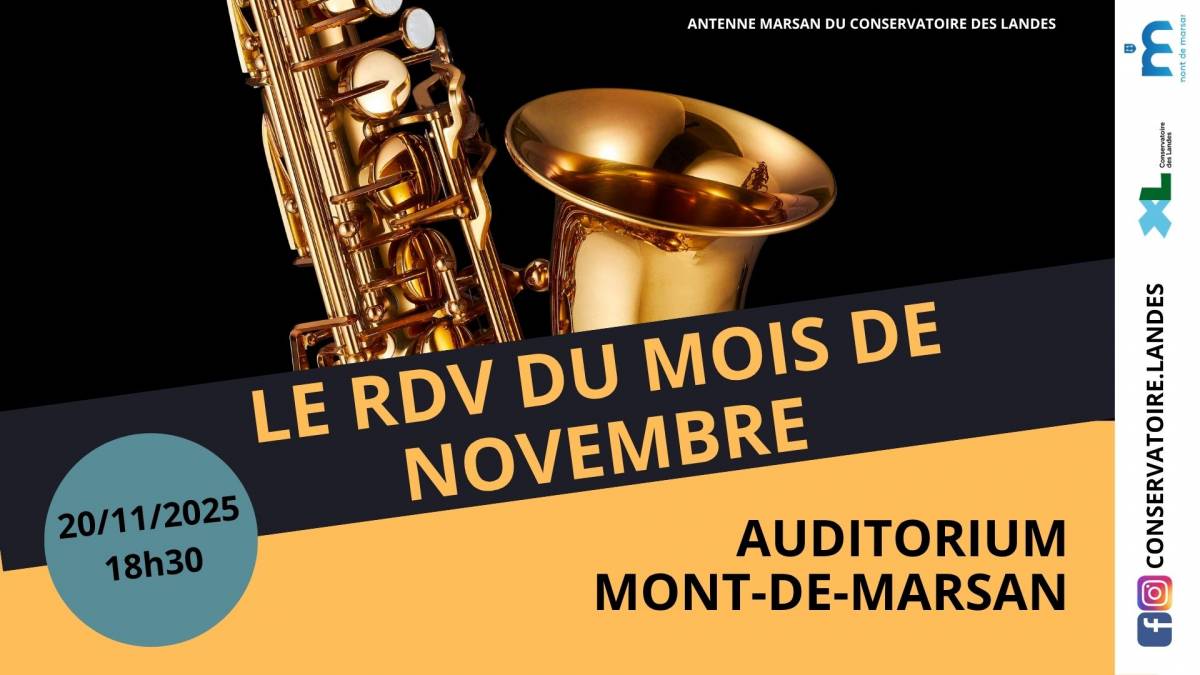 [ANTENNE MARSAN] LE RENDEZ-VOUS DU MOIS DE NOVEMBRE [ANTENNE MARSAN] LE RENDEZ-VOUS DU MOIS DE NOVEMBRE Publié le 15 octobre 2025 / Dernière modification le 21 octobre 2025 [ANTENNE MARSAN] LE RENDEZ-VOUS DU MOIS DE NOVEMBRE Publié le 15/10/2025 - Dernière modification le 21/10/2025 Le jeudi 20 novembre 2025 de 18:30 à 20:00 Venez partager ce moment musical avec nos élèves de l'antenne marsan !