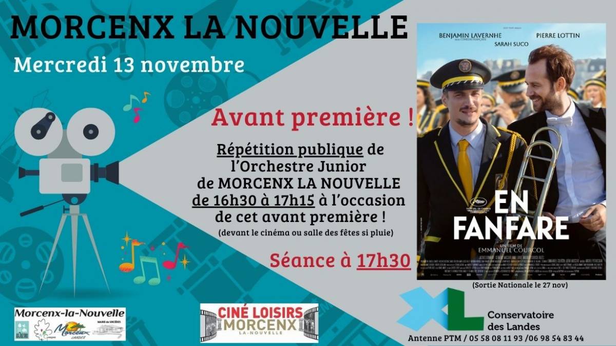 Venez profiter de la musique de 16h30 à 17h15 devant le cinéma (ou à la salle des fêtes en cas de pluie).