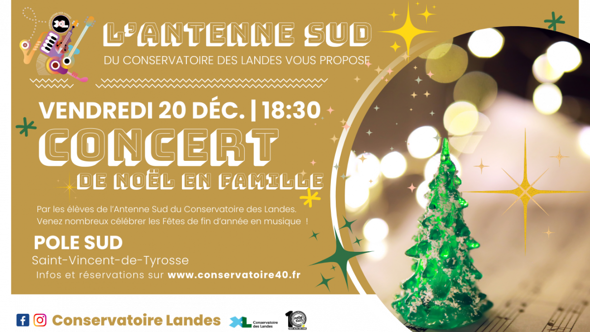 Les Fêtes de fin d'année approchent à grands pas et le Concert des Familles revient pour notre plus grand plaisir ! Venez écouter jouer les élèves de l'Antenne Sud du Conservatoire et partager un moment musical ensemble.