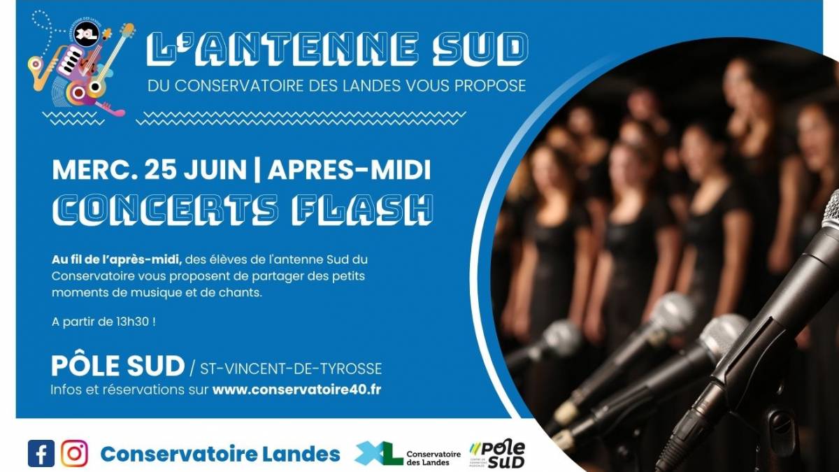 [ANTENNE SUD] CONCERTS FLASH [ANTENNE SUD] CONCERTS FLASH Publié le 08 avril 2025 / Dernière modification le 13 mai 2025 [ANTENNE SUD] CONCERTS FLASH Publié le 08/04/2025 - Dernière modification le 13/05/2025 Venez écouter tout au long de l'après midi des auditions musicales avec du basson, du piano, du tuba etc ainsi que les chorales du Conservatoire.