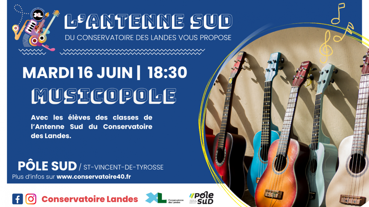 Venez fêter l'arrivée de l'été et la fête de la musique en avance avec les élèves de l'Antenne Sud ! Au programme de ce musicopole estival, des morceaux variés qui viendront ainsi conclure cette année riche en diversité musicale !