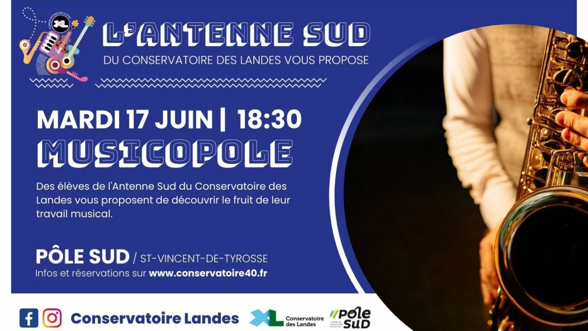 [ANTENNE SUD] MUSICOPOLE [ANTENNE SUD] MUSICOPOLE Publié le 17 mars 2025 / Dernière modification le 17 mars 2025 [ANTENNE SUD] MUSICOPOLE Publié le 17/03/2025 - Dernière modification le 17/03/2025 Les élèves de l'Antenne Sud vous présentent leur travail. Évènement gratuit sur réservation. Billetterie Weezevent